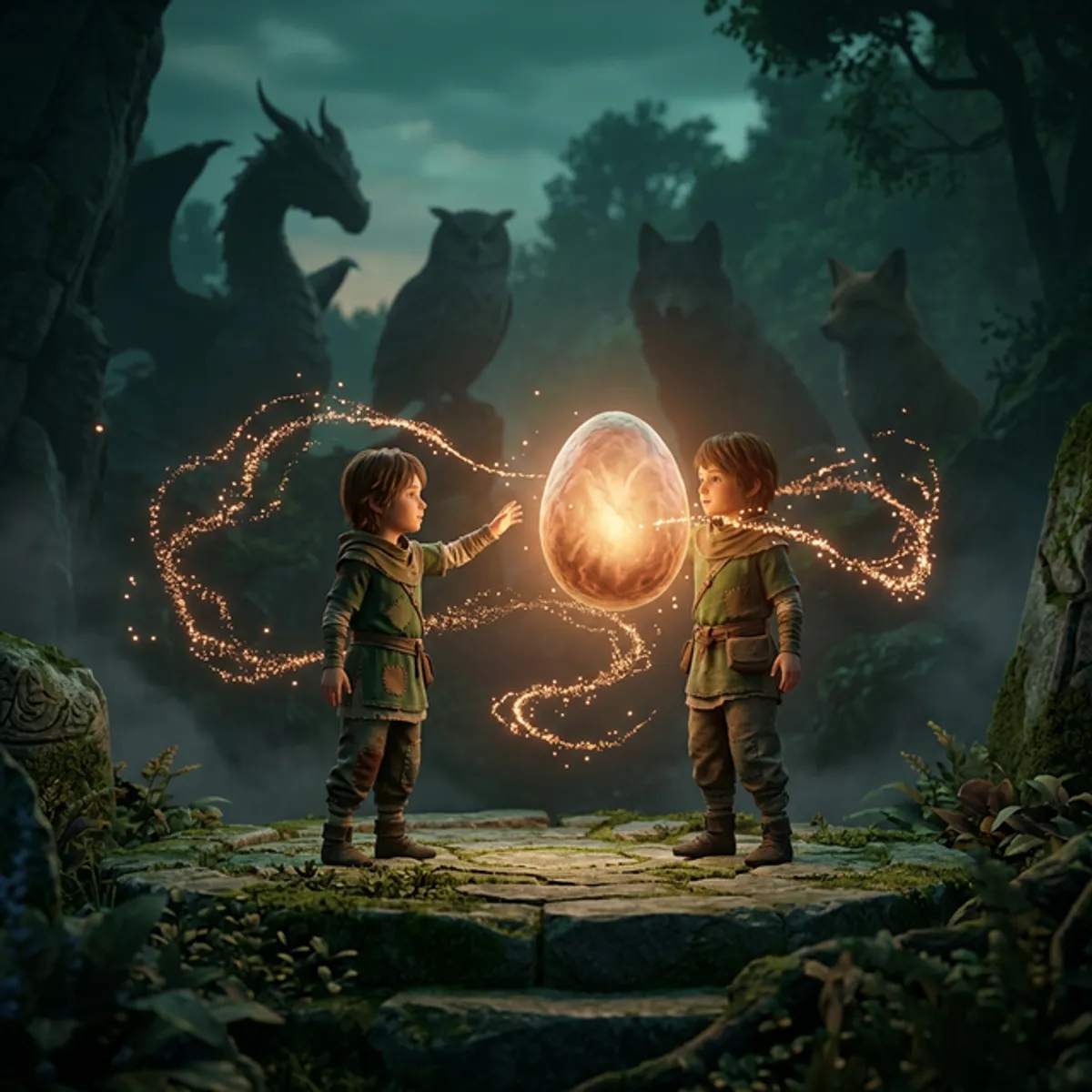 A glimmer-egg appears — a placement ritual that reveals which Founder Beast resonates with the Keeper's spirit. This is where every journey begins.